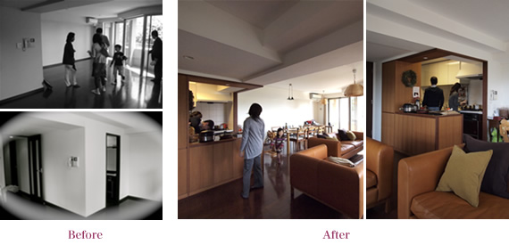 都内の中古マンションを購入なさった合計4人のご家族。キッチンを新しくしたい、との奥様のご要望を伺い、プランをすることに。